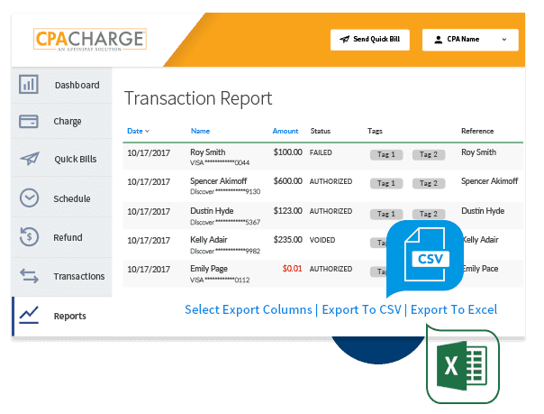 You need to be able to access and manipulate your data in a variety of flexible ways. That’s why we’ve made it easy to export CPACharge reports in a Microsoft Excel or CSV file with the click of a button. Import your data into Excel or other applications to analyze further and unlock more business insights.